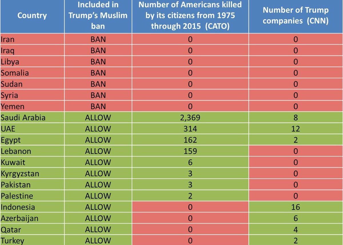 Over the past 40 years, the number of Americans killed on home soil by Muslims from Trump's banned countries = 0pic.twitter.com/5ax6sJkfxv