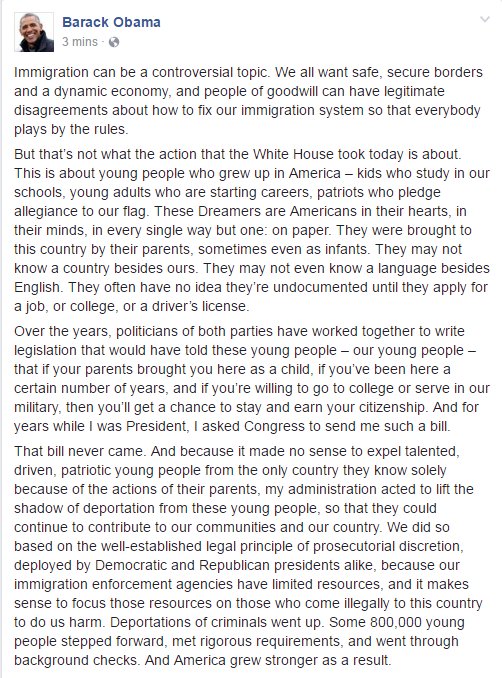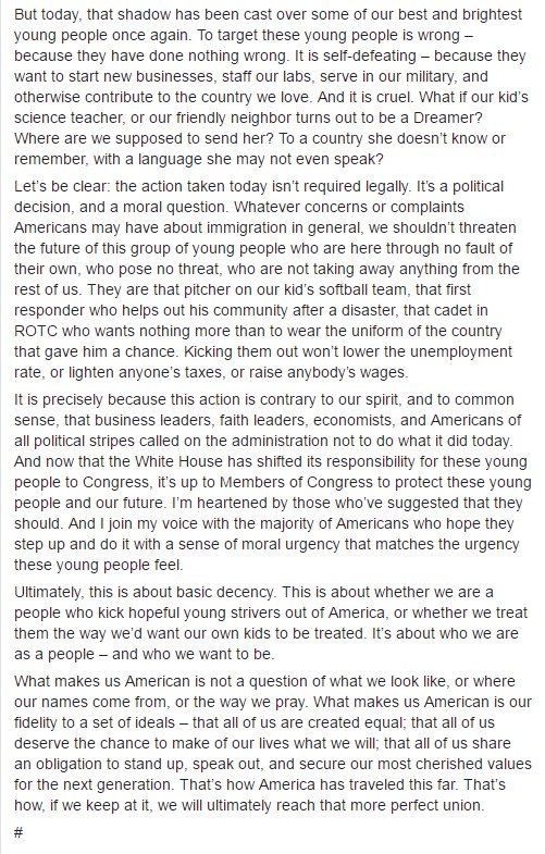 BREAKING: Pres. Obama releases statement on Pres. Trump's decision to rescind DACA: "Ultimately, this is about basic decency."pic.twitter.com/bbrZREL9bH