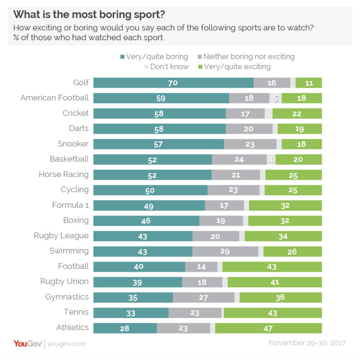 @YouGov poll, Britons see athletics as the most exciting sport to watch. https://yougov.co.uk/news/2018/01/10/what-most-boring-sport/ … Imagine if it was on TV as much as football...pic.twitter.com/O3r39JaVxw