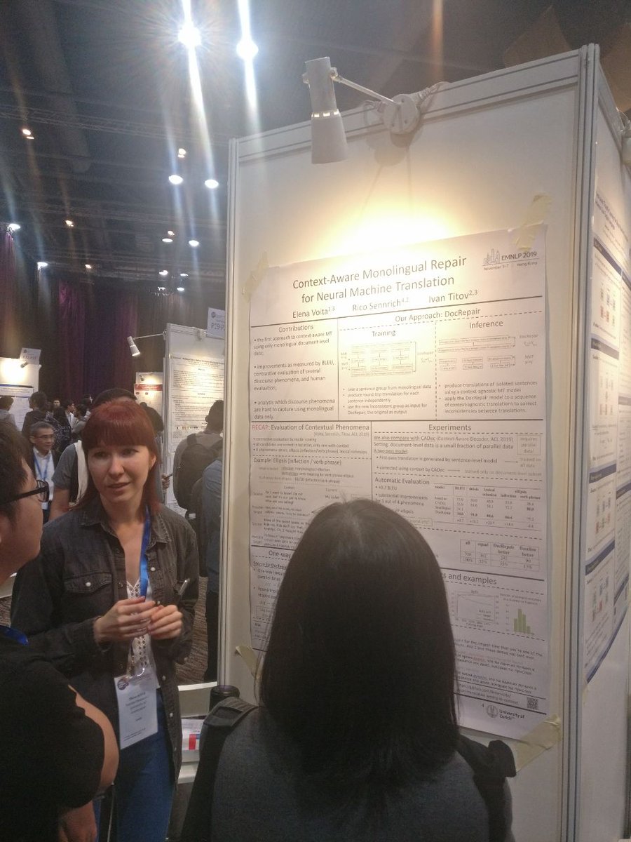 @emnlp: had a lot of fun explaining how to do context-aware NMT without document-level parallel data and, what is more surprising, why it even works :) (the paper with my research parents@iatitov and@RicoSennrich)pic.twitter.com/xBjAOzVZLf