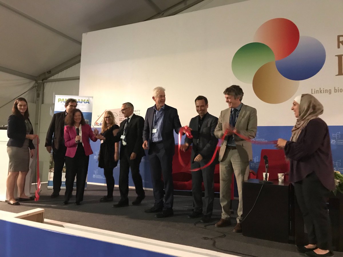 Ribbon-cutting ceremony to celebrate launch of business engagement theme in #panorama #RioPavilion #UNBiodiversityConference @IUCN @giz_gmbhpic.twitter.com/53Qs8BYkdl