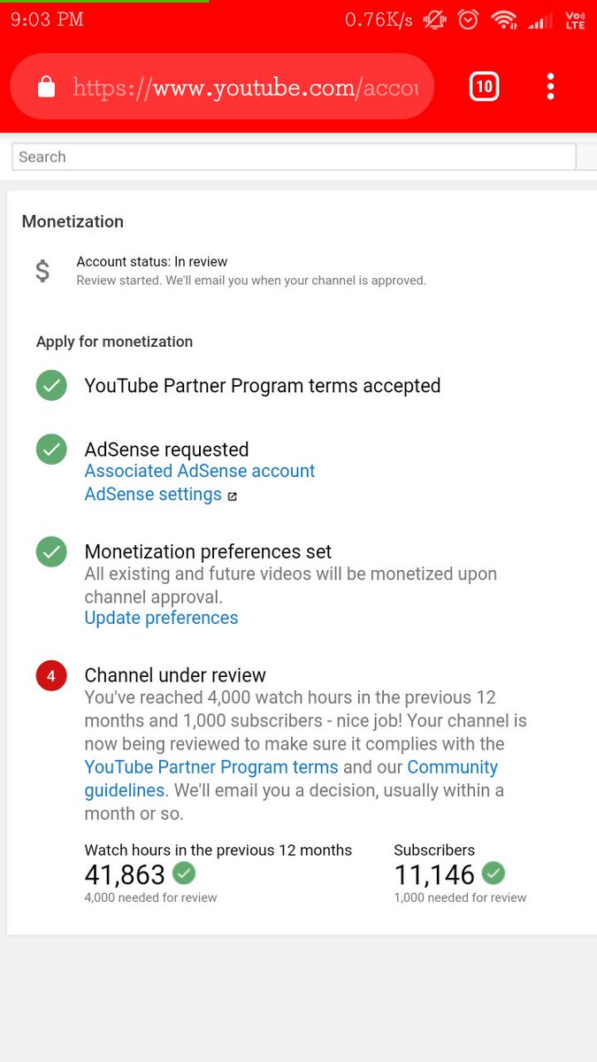 Sir please tell me what is the problem that my monetization is not going on even after completing 1k subscriber and 4k hours watchtimepic.twitter.com/L65E3Q8sef