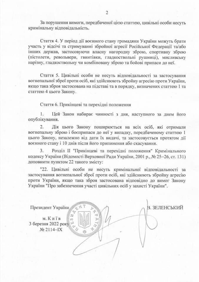 Le président ukrainien Volodymyr Zelensky a signé une loi autorisant tous les résidents à utiliser des armes pendant la loi martiale.pic.twitter.com/Ryv2gTjVMi