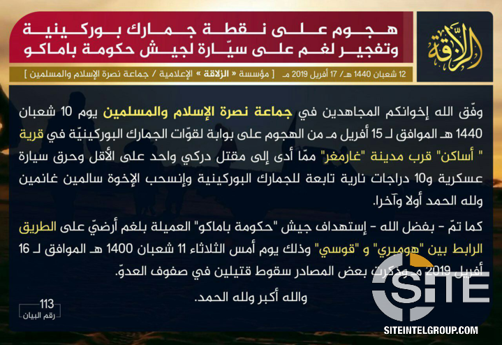1) More troubling news for NW Africa as #AQIM & #JNIM claim attacks today across #BurkinaFaso, #Mali, & #Tunisia. As I detailed in a tweet thread earlier this month, W Africa also becoming major ground for #ISIS, adding dangerous dynamic of competition.https://twitter.com/Rita_Katz/status/1113194499214323712 …