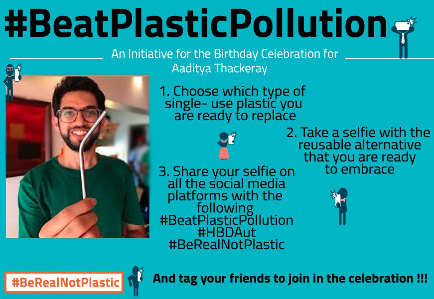 @AUThackeray Ji is by taking a selfie wid single use plastic which u've replaced. The man who has been instrumental in#PlasticBan in Maharashtra. Do upload ur pic with this creative! Together we shall#BeatPlasticPollutionpic.twitter.com/BcLNaznTxz