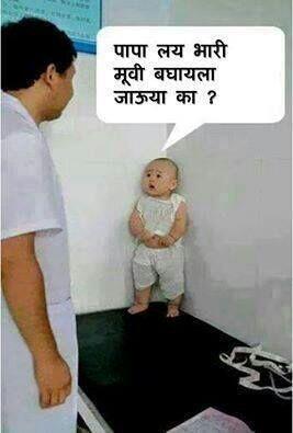 @Angeneliadfc the baby is asking the father to take him to the movie Lai Bhari..@Riteishd 1st marathi movie..