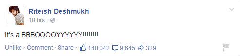 .@Riteishd and @geneliad blessed with a BABY BOY!