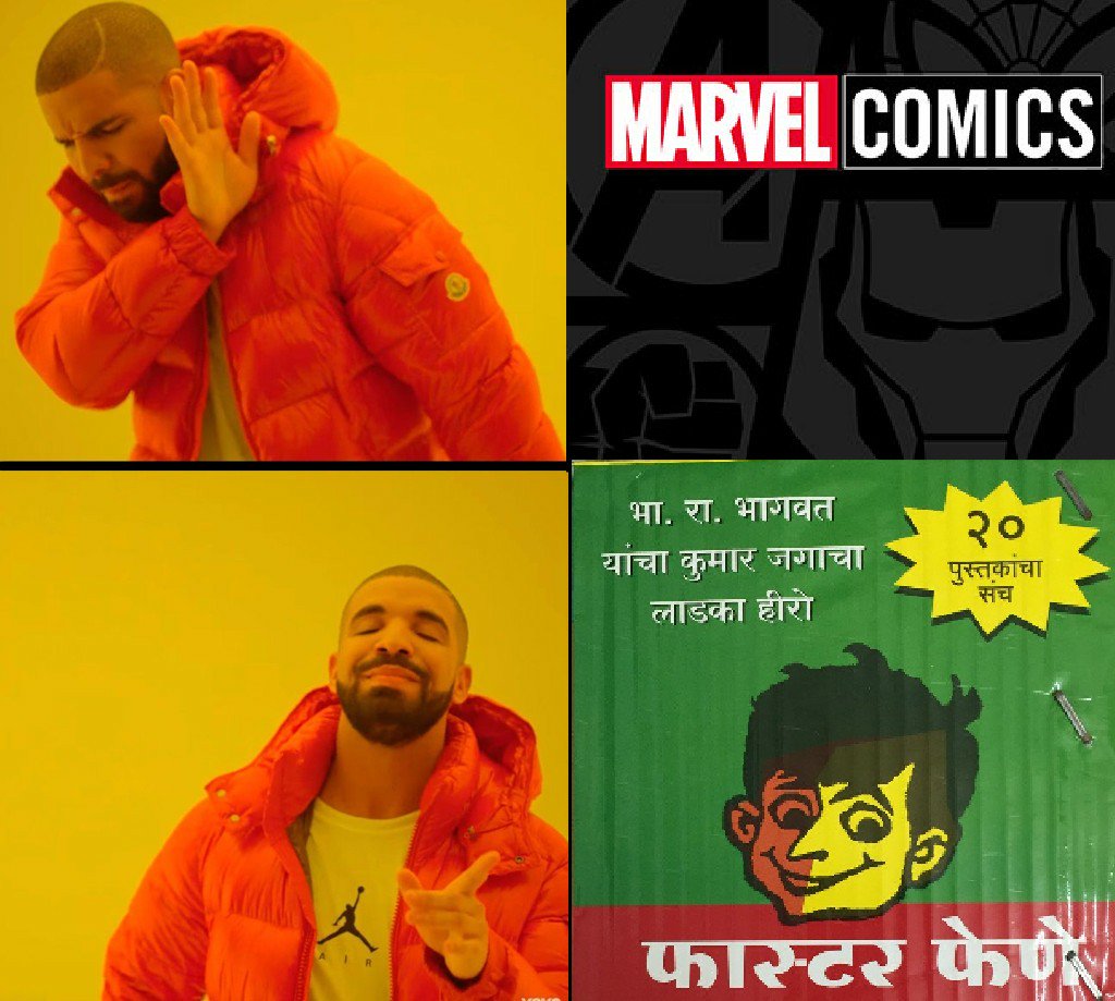 आमच्या बालपणी आम्ही marvel नाही फास्टर फेणे वाचलंpic.twitter.com/XGnVbbhBzZ