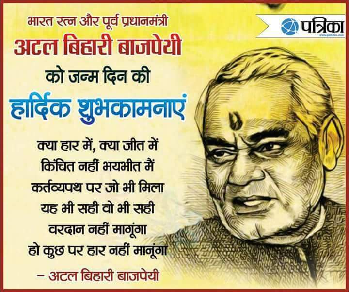 भारत रत्न श्री #अटल_बिहारी_वाजपेयी को जन्मदिवस की शुभकामनाएं।