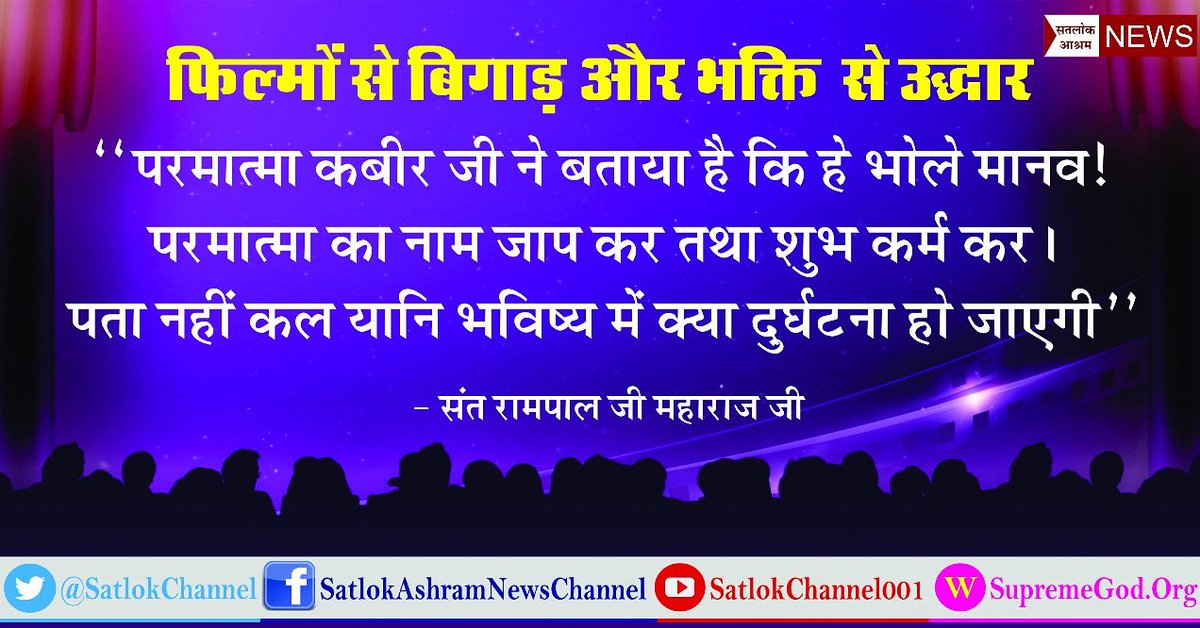 फिल्मों से समाज मे इस तरह बुराई घर कर गई है #बॉलीवुड_ने_बिगाड़ा_सतसंग_ने_सुधार तत्वदर्शी संत के बिना कोई भी इस बुराई को दूर नही कर सकता है तत्वदर्शी संत को पहचाने के लिए👇 सतसंग सुने:- श्रद्धा MH1 02:00 PM #CaptureTheRealYou @shilpa_sinde @BBCKarishma @PriyaKathir7 @aajtakpic.twitter.com/sE3anTwuhg