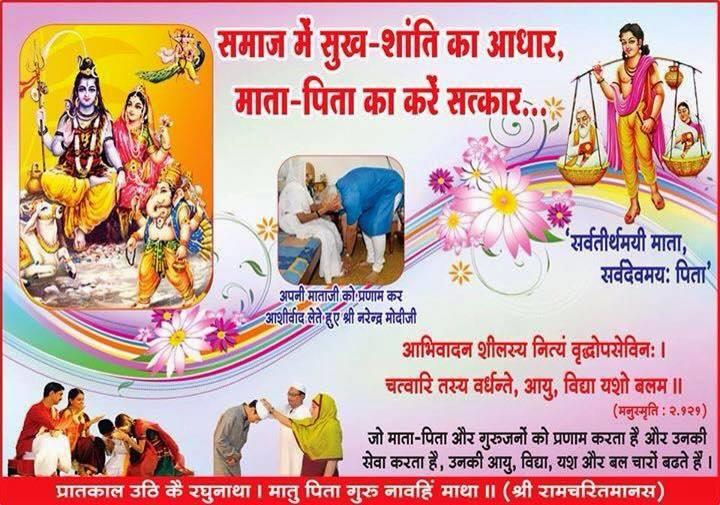 श्री देवी भागवत कहता है कि माता पिता की सेवा से मिला आशीष सात जन्मों के कष्ट व पाप दूर कर देता है तो आईये मनायें माता पिता पूजन दिवस।