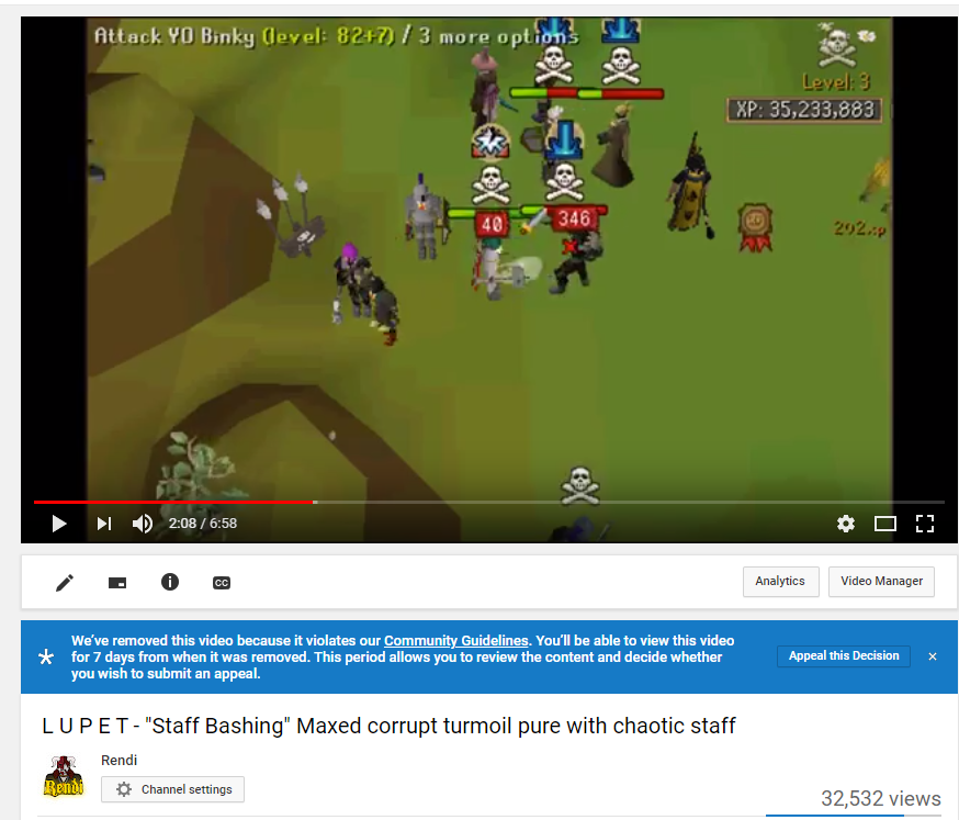Wondering how old Runescape pk videos from 2010 get taken down for "spam / deceptive practices / scams" and the appeal gets instantly denied twice now over the last few months. A+ system you have in place here. @TeamYouTubepic.twitter.com/Ib3NEvSAUu