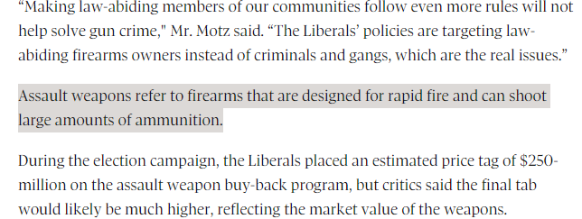 @globeandmail. Automatic weapons are prohibited. Semi-automatic rifles fire at more or less the same rate. The maximum magazine capacity for rifles is five. So what weapons are you referring to? https://www.theglobeandmail.com/politics/article-ottawa-to-adopt-red-flag-laws-to-allow-courts-to-confiscate-guns/ …pic.twitter.com/9Gpid56q02