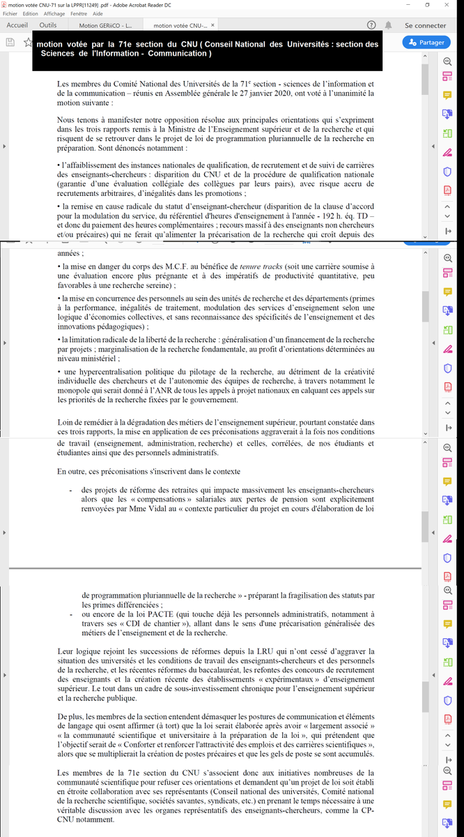 2/ (…)du #ConseilNationaldesUniversites , le #laboratoire de #recherches #Geriico de l'#UniversitédeLille proteste officiellement contre la nouvelle #LPPR qui s'attaque au monde de la #Recherche en France.pic.twitter.com/ad5sdiMXy9