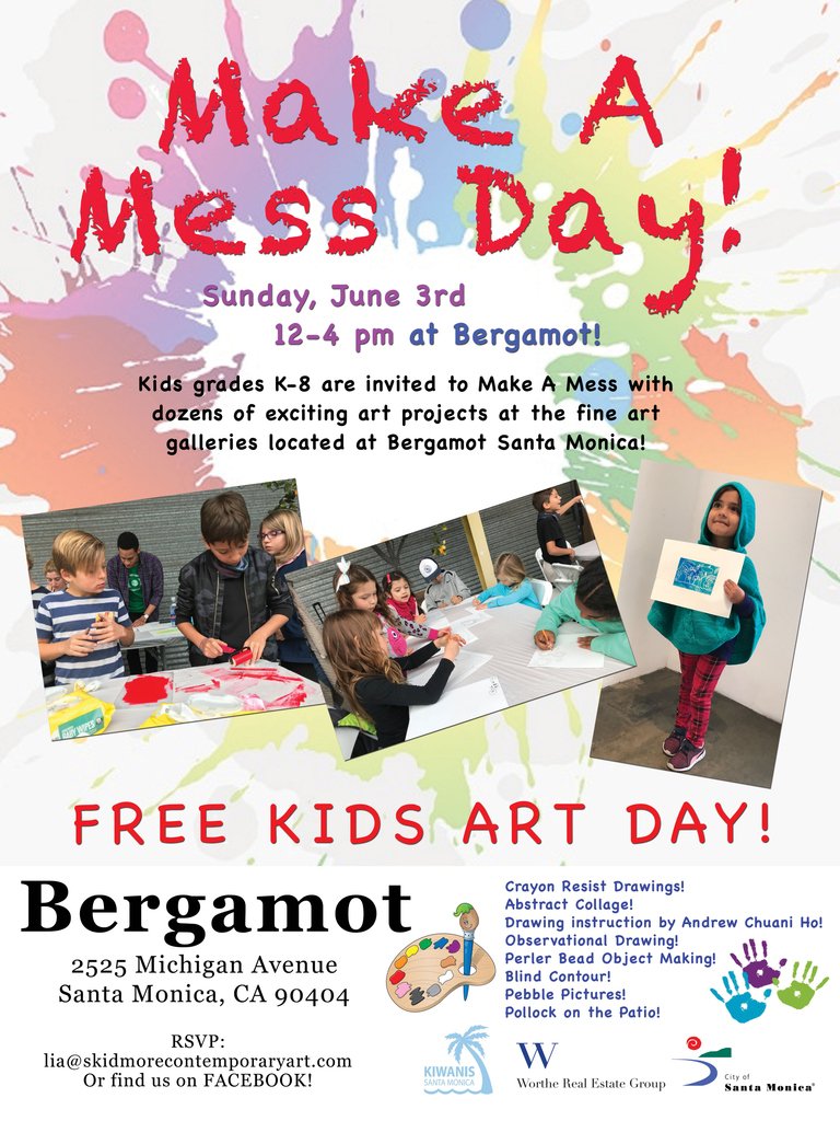 Join us and bring your kids from MAKE A MESS DAY at Bergamot! Many of the galleries and art-spaces are participating in putting on children's Art projects. Come, Play, Make some Art!! Sunday June 3rd, 12-4 pm!pic.twitter.com/2XE37rOCTv