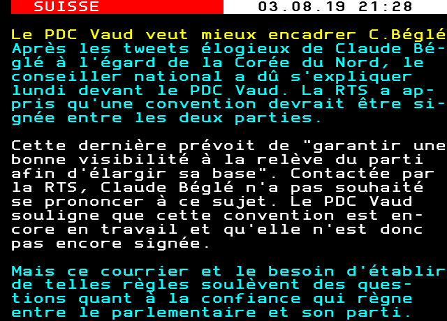 Pour une fois qu’il y avait quelque chose de croustillant au PDC Vaud. D’habitude c’est tellement la soupe tiède. Béglé le bigleux nous faisait bien rigoler au moins.