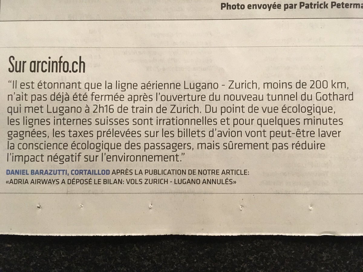 Y'a que moi qui trouve que la suppression d'une ligne aérienne interne entre deux villes séparées par deux heures vingt de train à peine est plutôt une bonne nouvelle?https://www.letemps.ch/suisse/pluie-critiques-contre-swiss-apres-labandon-luganozurich …