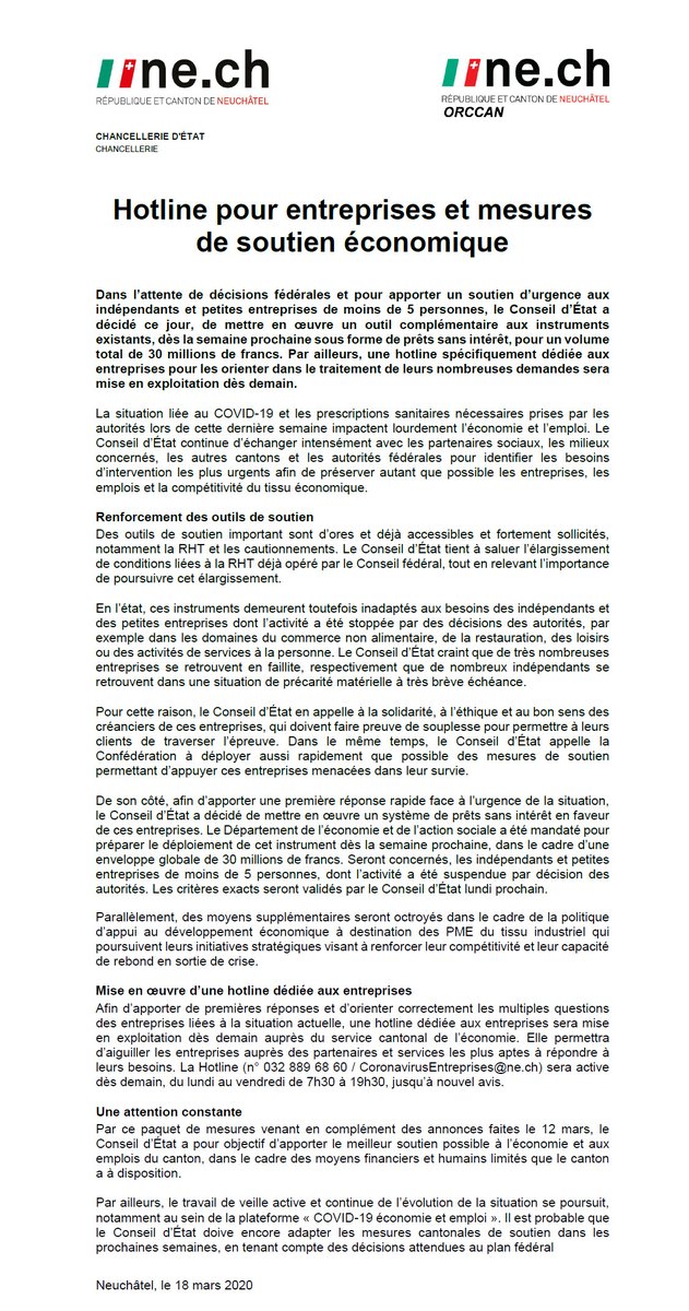 + un email CoronavirusEntreprises@ne.ch pic.twitter.com/i57jkASXhK