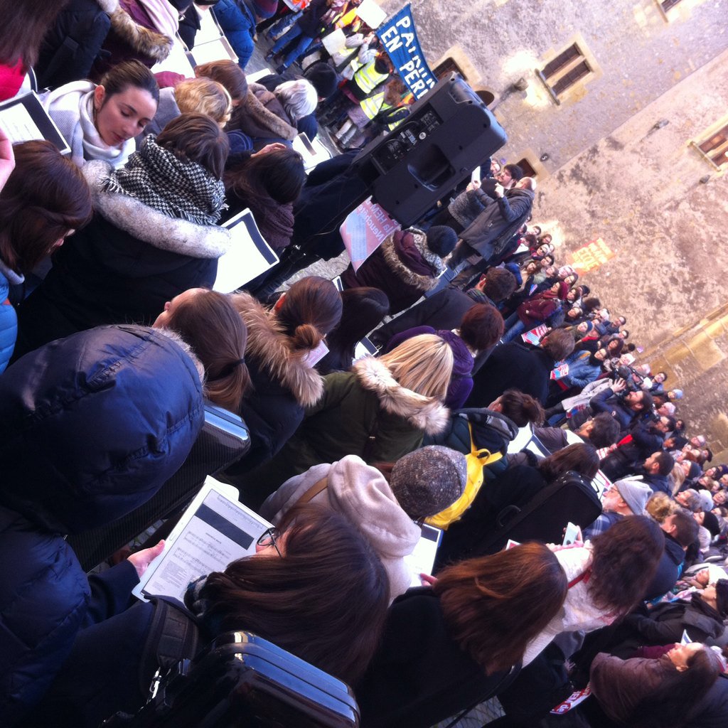 Mobilisation dans la cour du Château contre la fermeture de la HEM Neuchâtel: le Grand Conseil accueilli en musique.pic.twitter.com/qF6iOD2VpH