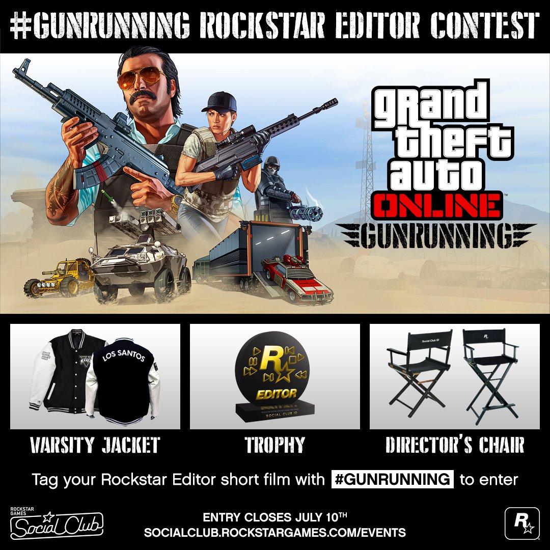 #GUNRUNNING Rockstar Editor Contest Enter by July 10 for a chance at the grand prize trophy and custom prizes: http://rsg.ms/8d6df2f pic.twitter.com/qOCRWzMsTs