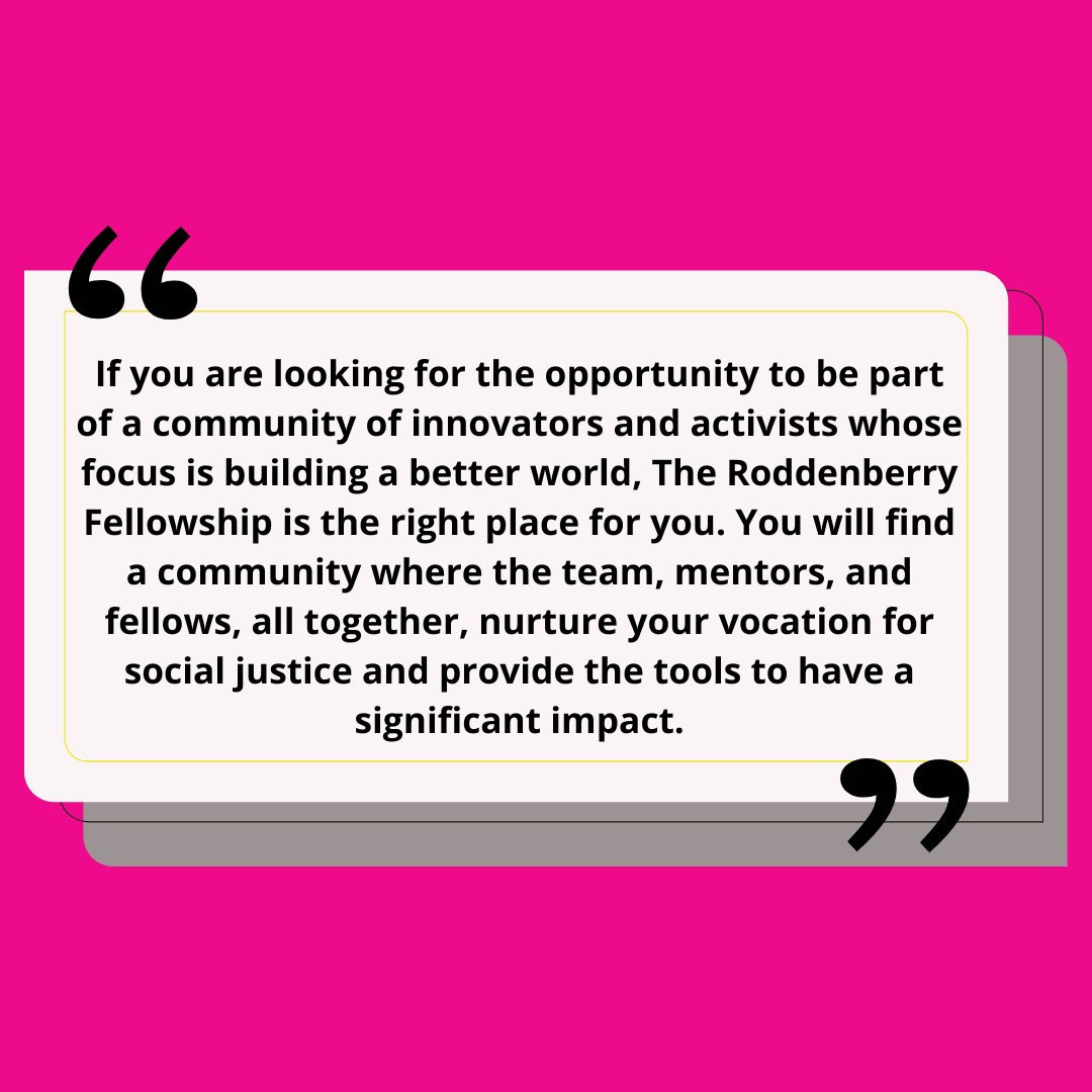 Join our community of extraordinary leaders and activists; apply to become a Roddenberry Fellow. Learn more here: https://bit.ly/rodfellow pic.twitter.com/qIhJEdkYxi