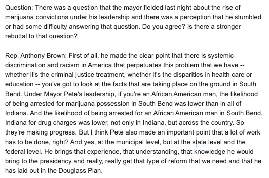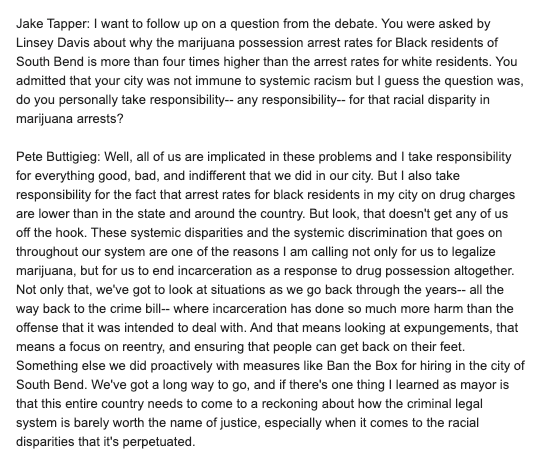 "Under Mayor Pete's leadership, if you're an Af-Am man, the likelihood of being arrested for marijuana possession in South Bend was lower than in all of Indiana."pic.twitter.com/68e7affyM1