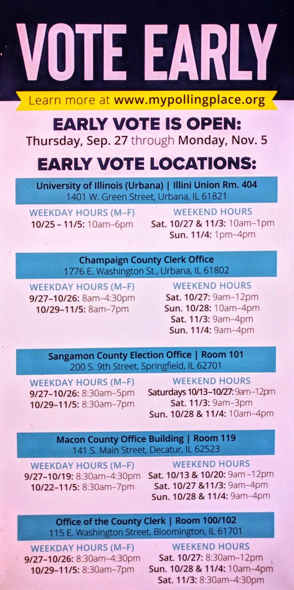 Don't wait to Nov 6 to unseat @RodneyDavis! Vote early, or by mail, or absentee voting. No need to queue, miss work, or be in bad weather. So do it today. Here's where: https://www.elections.il.gov/votinginformation/EarlyVotingLocations.aspx … 10:40:33pic.twitter.com/6SiblBB5qe