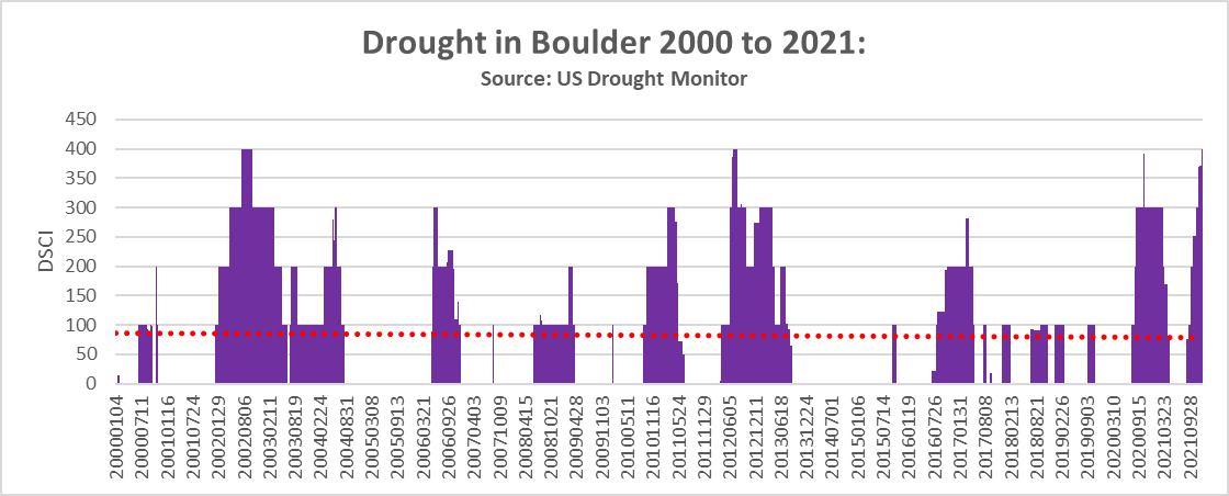 And here is the trend for drought in Boulder 2000-2021 (time period of available data at US Drought Monitor)pic.twitter.com/iTj4HbmfrL