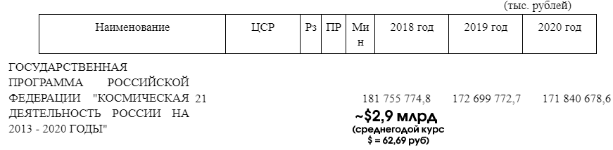 $20,7 млрд против $2,9 млрд в 2018 г. Разница должна быть ~20 раз, т.е. испарилось в небытие ~64% российского космического бюджета?