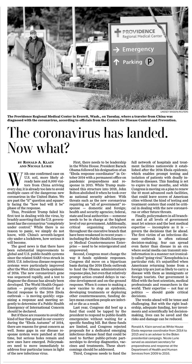 #nCoV2019#coronoavirus is here. What should we do now? My thoughts (w/ Dr Nicki Lurie) in today’s@washingtonpostpic.twitter.com/hQYpYYbaEQOvo je potencijalno osjetljiv multimedijski sadržaj. Saznajte više