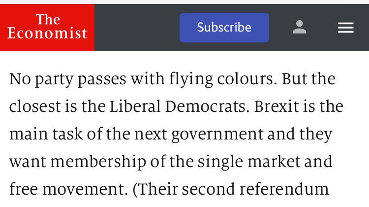 The Economist is now also endorsing the Liberal Democrats as the most sensible party.pic.twitter.com/G6d8euKXdV