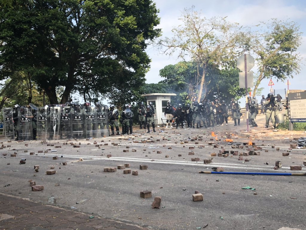 Frontline of protesters moved up near bridge 2 - molotovs, tear gas, bricks, rubber bulletspic.twitter.com/Hy8XN4vQLs
