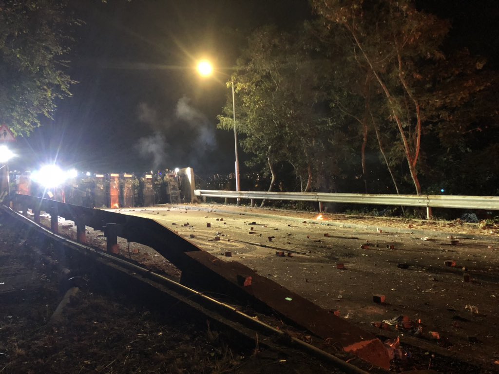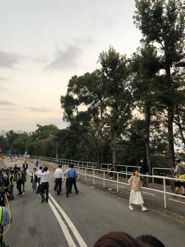 This is frontline of protests on the far side of bridge no. 2. All night this has been a fight to reclaim bridge to keep police out of CUHKpic.twitter.com/BBzsXhuORx