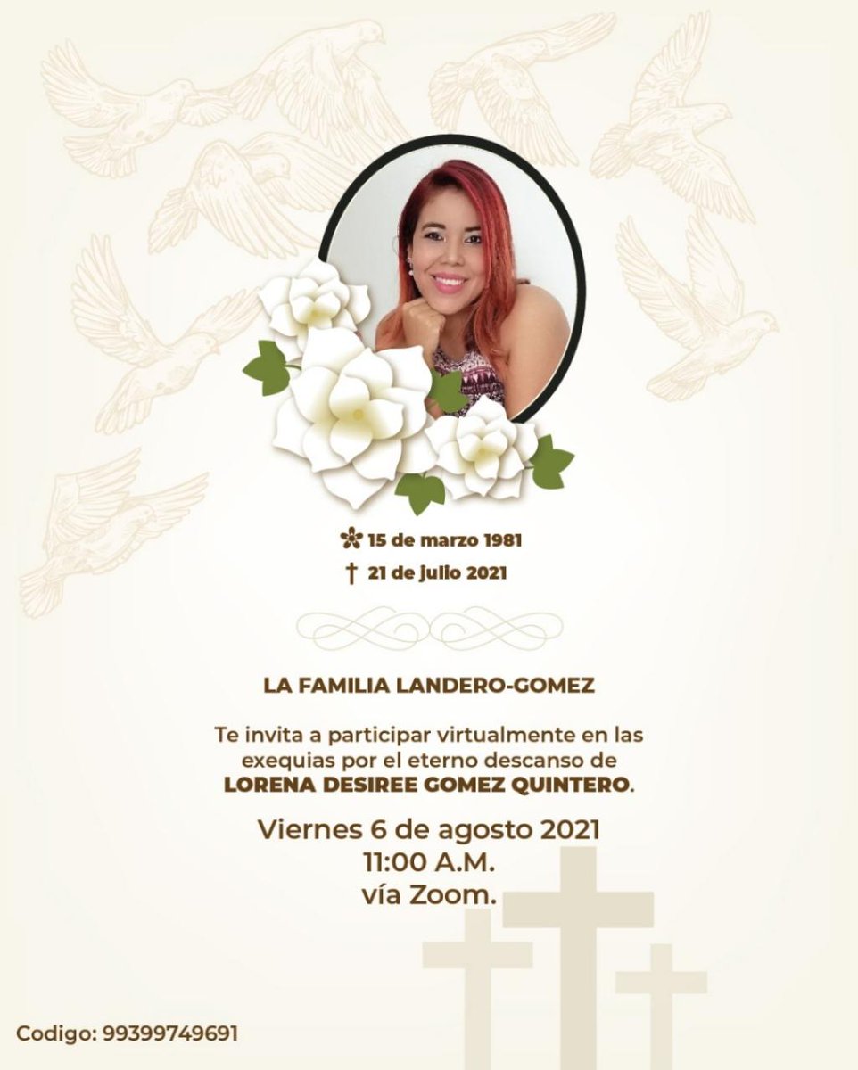 Hoy despedimos a nuestra amiga Lorena Gómez. Les comparto el enlace para quienes la conocieron y quieran acompañarnos virtualmente.pic.twitter.com/TcRLs6EPsx
