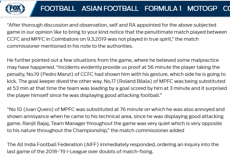 @FOXSportsAsia reports on probable MATCH FIXING scandal of @ChennaiCityFC who recently got investment offer from @FCBasel1893 AIFF triggers investigation !! Link https://www.foxsportsasia.com/football/asian-football/1058308/all-india-football-federation-orders-inquiry-into-i-league-following-doubts-on-match-fixing/ … @roschben @JakobWeber17 @NZZ #FCBasel1893 @EvaTedesco @tilman_p @LukasHausendorf @pascalflury pic.twitter.com/gS5RX786sc
