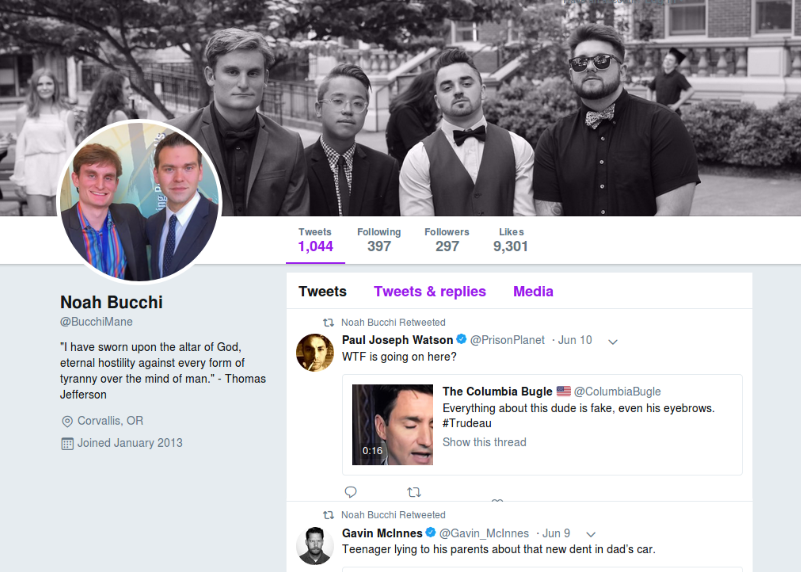 Noah Bucchi is another livestreamer who approached the May Day event in coordination w/ Joey Gibson's violent far-right goons. His social media shows him posing w/ anti-semitic pizzagate conspiracy theorist Jack Posobiec, neo-Nazi propagandist Milo Yiannopoulos, and others.pic.twitter.com/x8P021mAVP