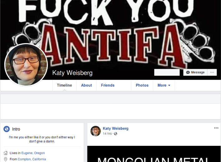 Katy Weisberg is a relative newcomer to the Patriot Prayer organization, but seems to be friends with David "Smoke Bomb" Willis.pic.twitter.com/Ehtlx0LtDR