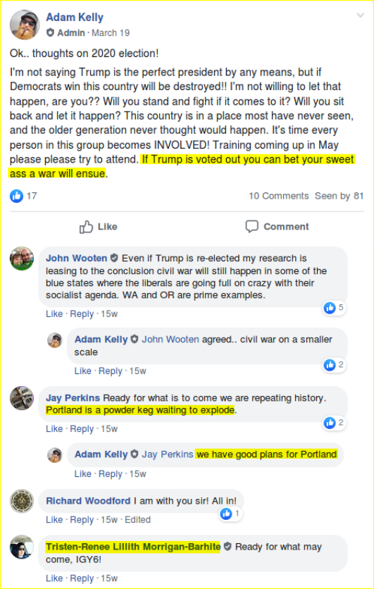 In another thread, she endorses militia member Adam Kelly's veiled threats against the city of Portland in the event of a Trump election defeat.pic.twitter.com/jnAETJ5NzH