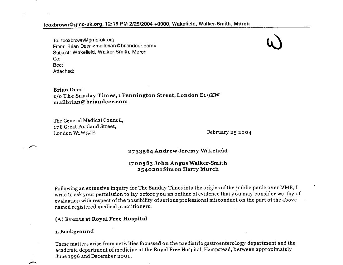 25. You also assert “The definitive reference to AW [Andrew Wakefield] is Brian Deer’s in depth investigation [of the Lancet paper]" But there are many serious problems with Deer’s articles.