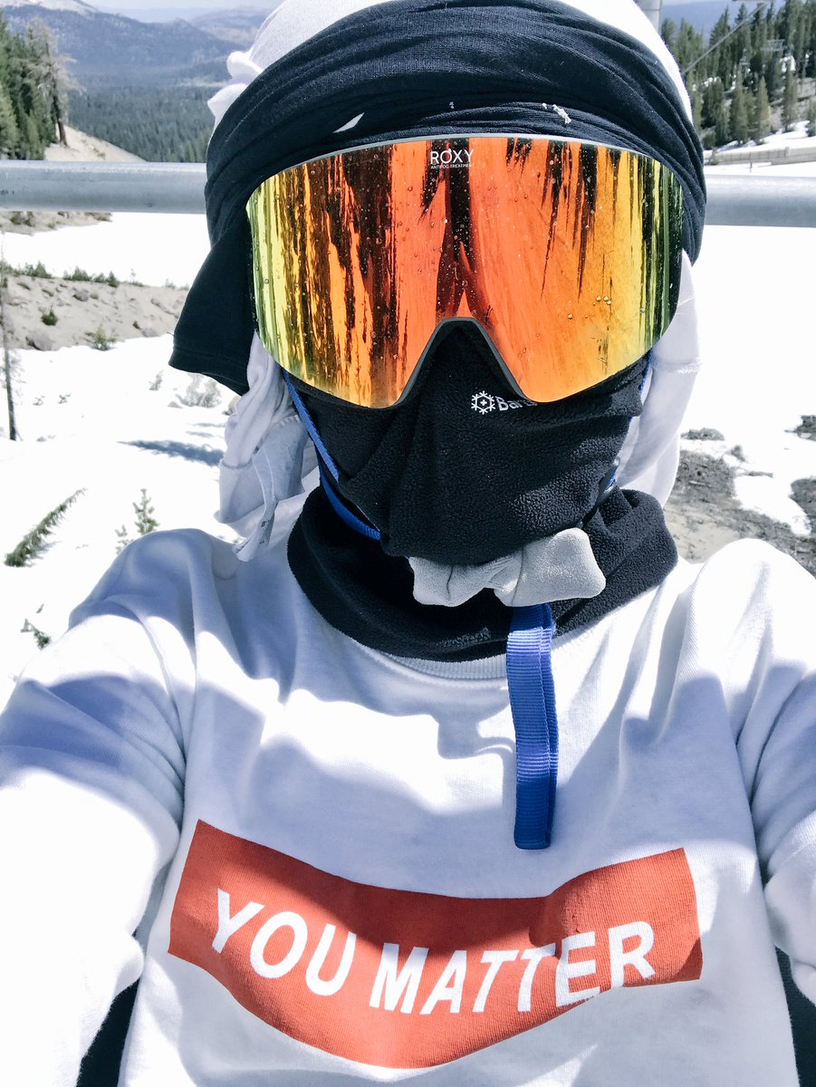 When the lifty keeps calling you a DUDE. Ninja steeze -->> sun protection in full effect. Snowboarding in this heat.pic.twitter.com/B0K1mfv7eN