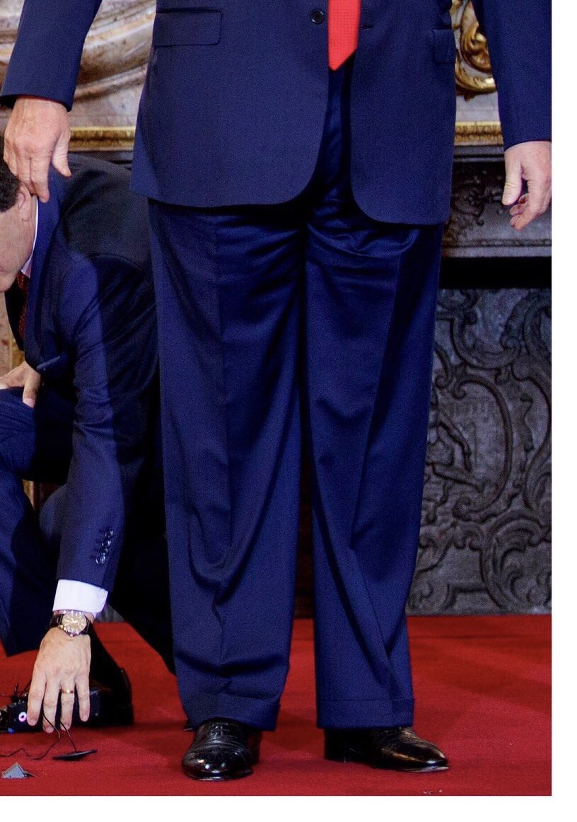 And he had to wear stuff from the Lost & Found that Roger Stone left behind. Sad panda.