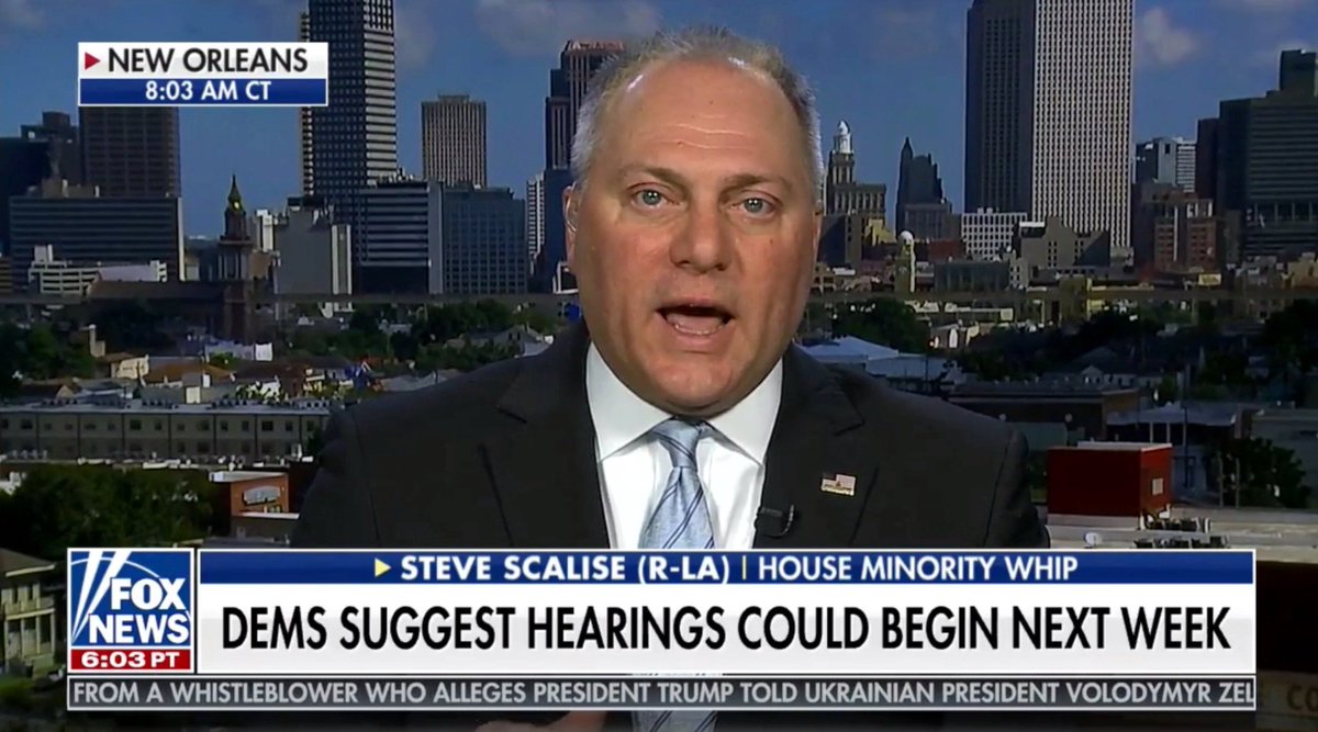 WTP @realDonaldTrump UNTIL BARR INDICTS DEEP STATE TRAITORS IN CONGRESS THIS BS WILL CONTINUE "YOU ALL WORK FOR US" DECLARE NAT'L EMERGENCY TO THWORT CIVIL WAR II TAKE OVER CONGRESS ORDER FBI ARREST OBAMA BIDEN HRC BILL COMEY MUELLER ROSENSTEIN LYNCH HOLDER MCCABE BRENNAN CLAPPERhttps://twitter.com/SteveScalise/status/1177985774702223361 …