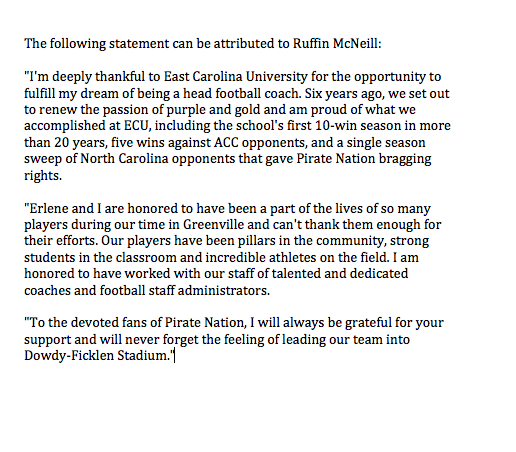 @RuffinMcNeill We love you Coach Ruff. Thanks for all that you did for ECU.#PirateForLifeThanks. Twitter will use this info to make your timeline better. UndoUndo