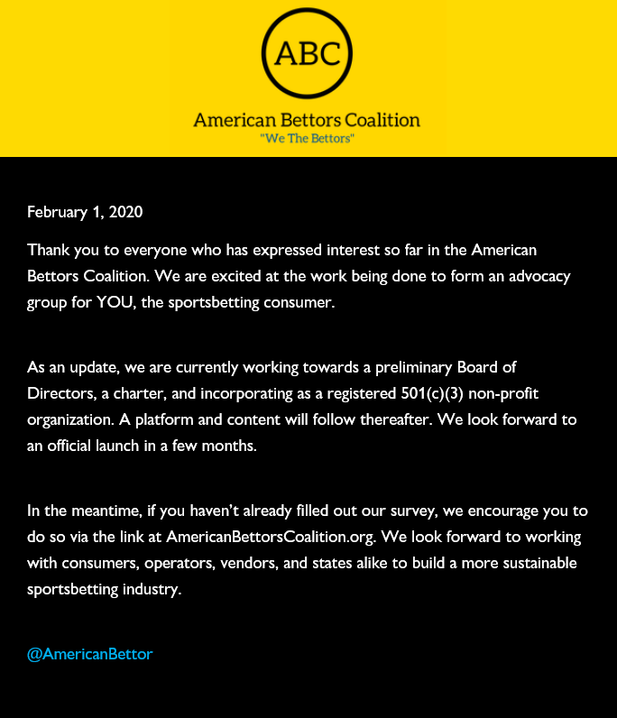 An update on our progress at American Bettors Coalition:pic.twitter.com/nVUpFQG1NZ