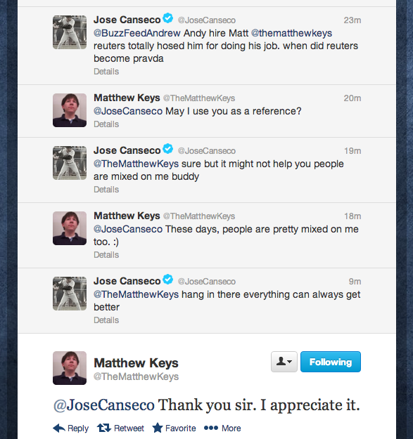 RT @BAHjournalist: Why, yes, @JoseCanseco and @TheMatthewKeys are having a fascinating Twitter conversation ►pic.twitter.com/AnUwUzXBvJ