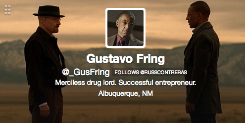 Guess who from @BreakingBad_AMC is following me? One @_GusFring. Yep!pic.twitter.com/MsKrLLMcHn