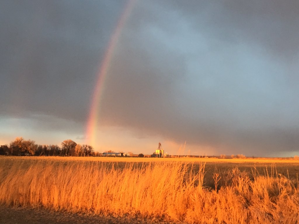 A rainbow at sunset on the Colorado Great Plains #cowx #mcclave #colorado #nofilterpic.twitter.com/vv6NJbyPTH