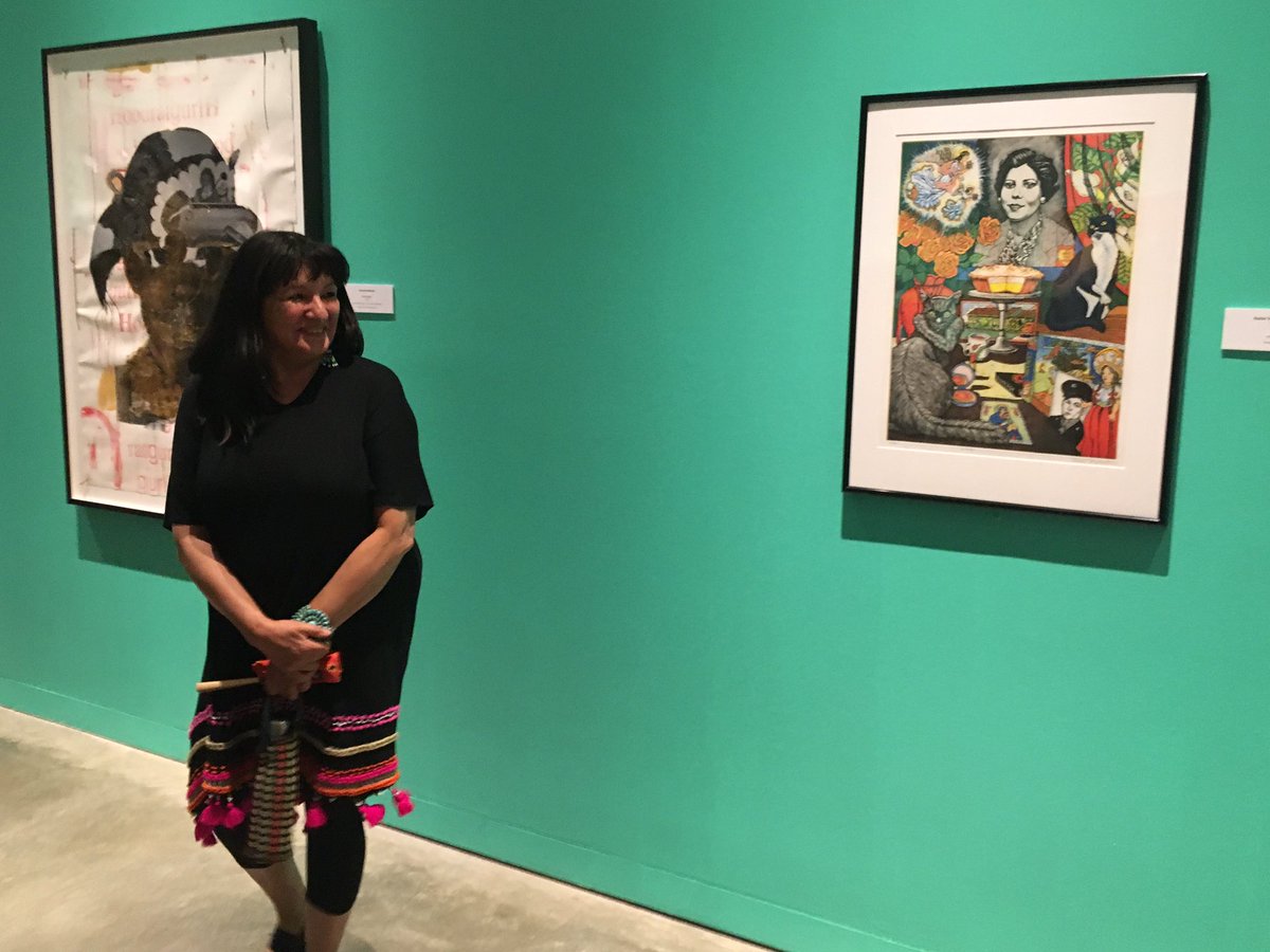 With writer Sandra Cisneros during her tour of 'House on Mango Street' art exhibit at @NHCCNM #ChicanaLitpic.twitter.com/LeMT3iWDCX