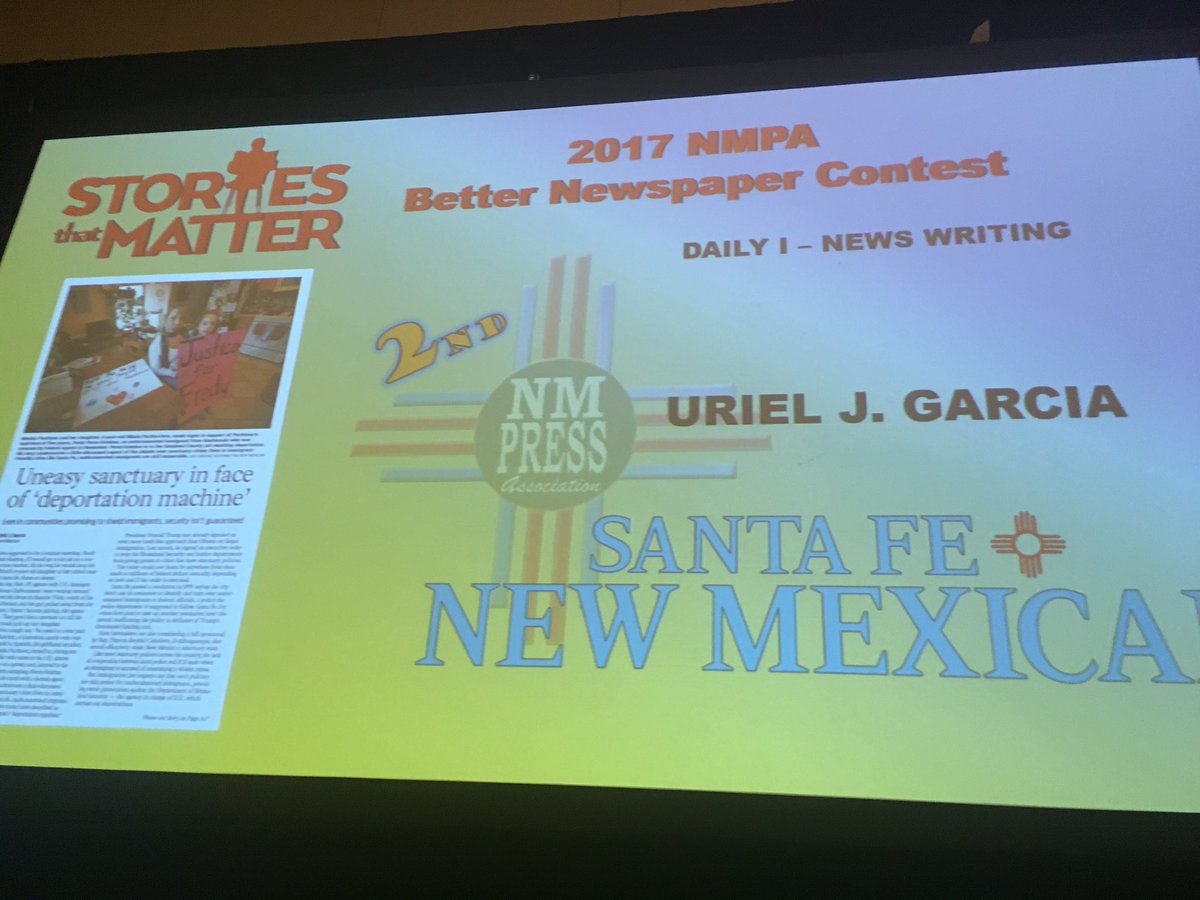 My pal @ujohnnyg has left #NM and now with @arizonarepublic but he won 1st place for news writing at @newmexicopress #nmpa #journalismpic.twitter.com/T2vLTa27rN