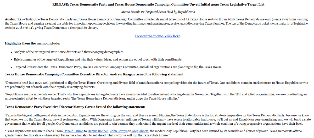 RELEASE: @texasdemocrats and @texashdcc unveil initial Texas Legislative Target List
